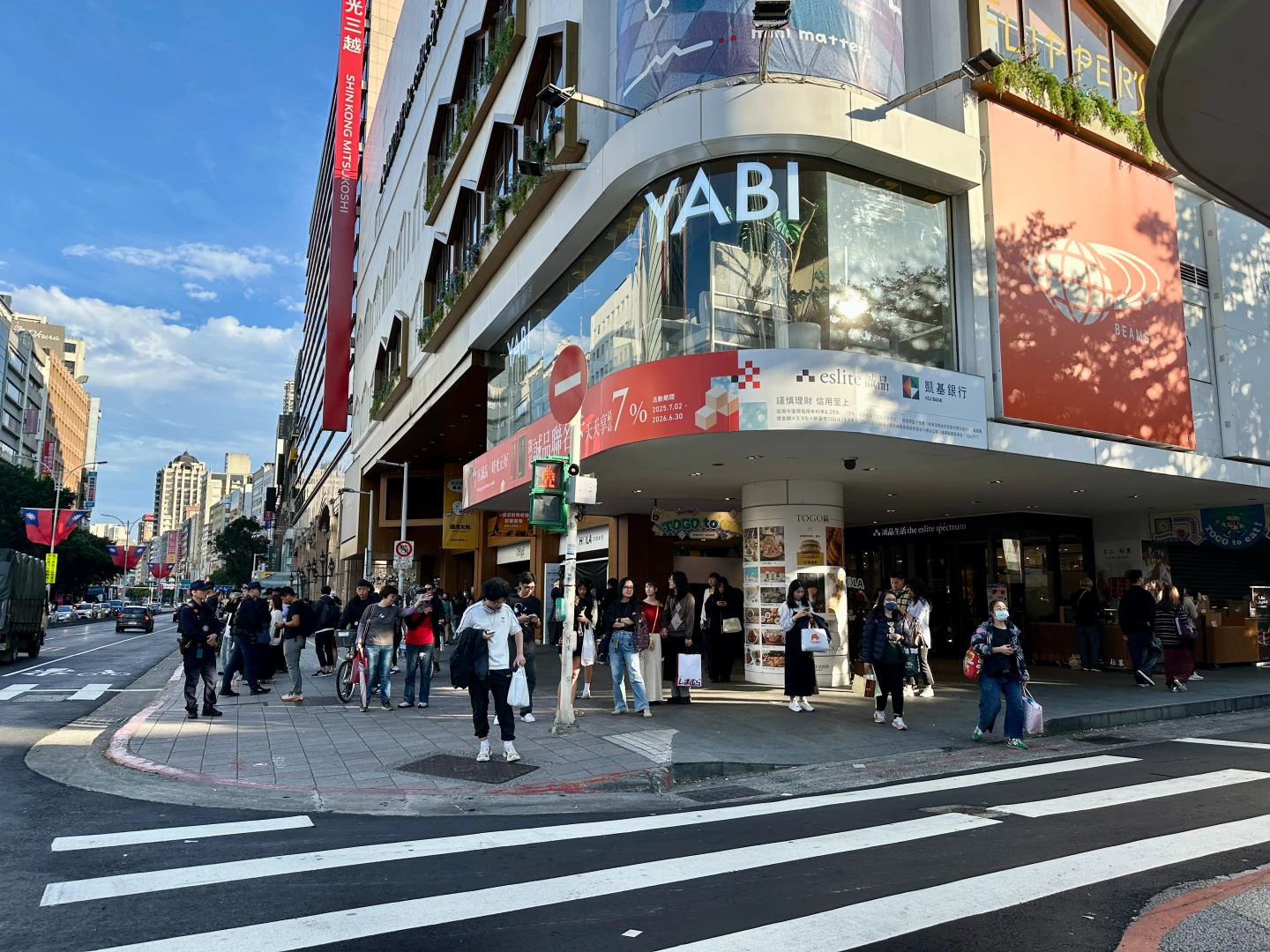 不過,事發地點北捷中山站附近商圈,有誠品南西店、新光三越南西店等百貨,也有許多店家、餐廳聚集,假日也有市集,相較於過往假日總是人潮滿檔、寸步難行,今天人潮明顯有減少,可以順利在街道上走動,不需要人擠人,不過,依舊可看到很多民眾,趁著好天氣,到中山商圈附近逛街。