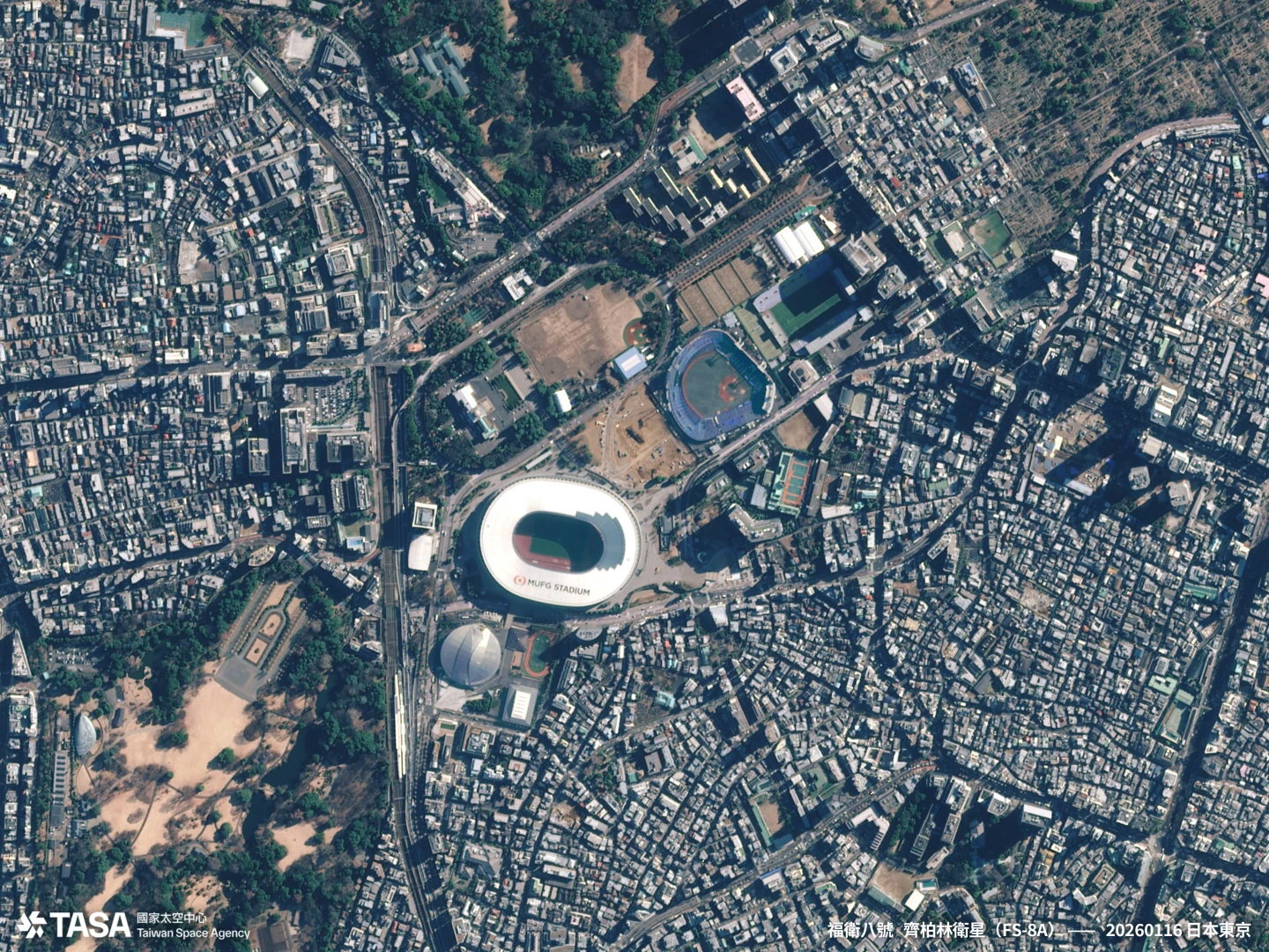 【記者王良博/台北報導】台灣第一個自製衛星星系「福衛八號」首顆齊柏林衛星,去年11月底升空入軌後,歷經一連串功能驗證、軌道操控作業及逾百次的測試取像,1月展開正式取像任務。國家太空中心(TASA)今(11)日公布福衛八號第一波影像成果,範圍涵蓋竹科園區、台南安平、高雄興達港、日本東京國立競技場、西班牙巴塞隆納機場等。