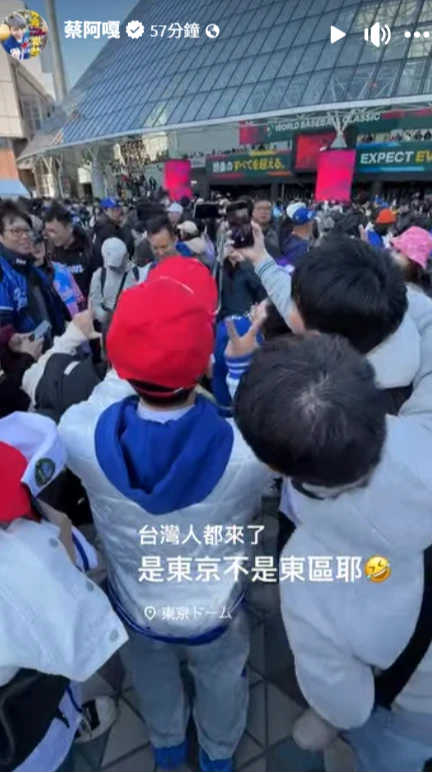 知名YTR蔡阿嘎已在日本為中華隊加油,一早抵達東京巨蛋,看到滿滿的台灣人,大家齊喊「Team Taiwan!」超熱血現況讓他驚呼:「這是東京不是東區耶!」