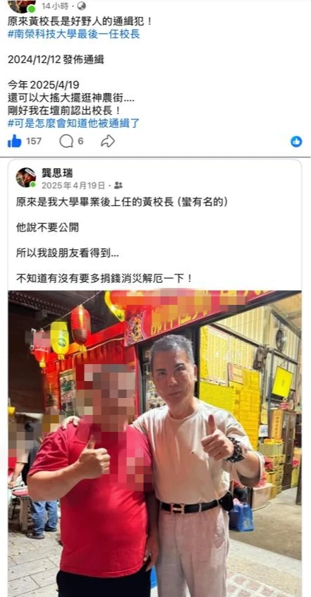 網友透露,他不知情黃甫九天(右)當時遭通緝,還與對方合照,黃男則請他不要公開照片。取自FB@我是台南人 zoomin