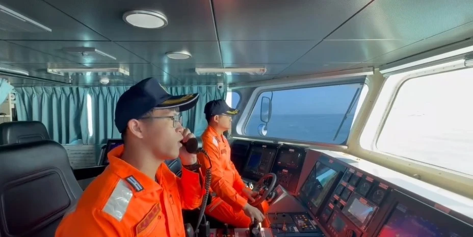 海巡人員以中英文廣播,要求陸海警船駛離金門海域。海巡署提供 zoomin