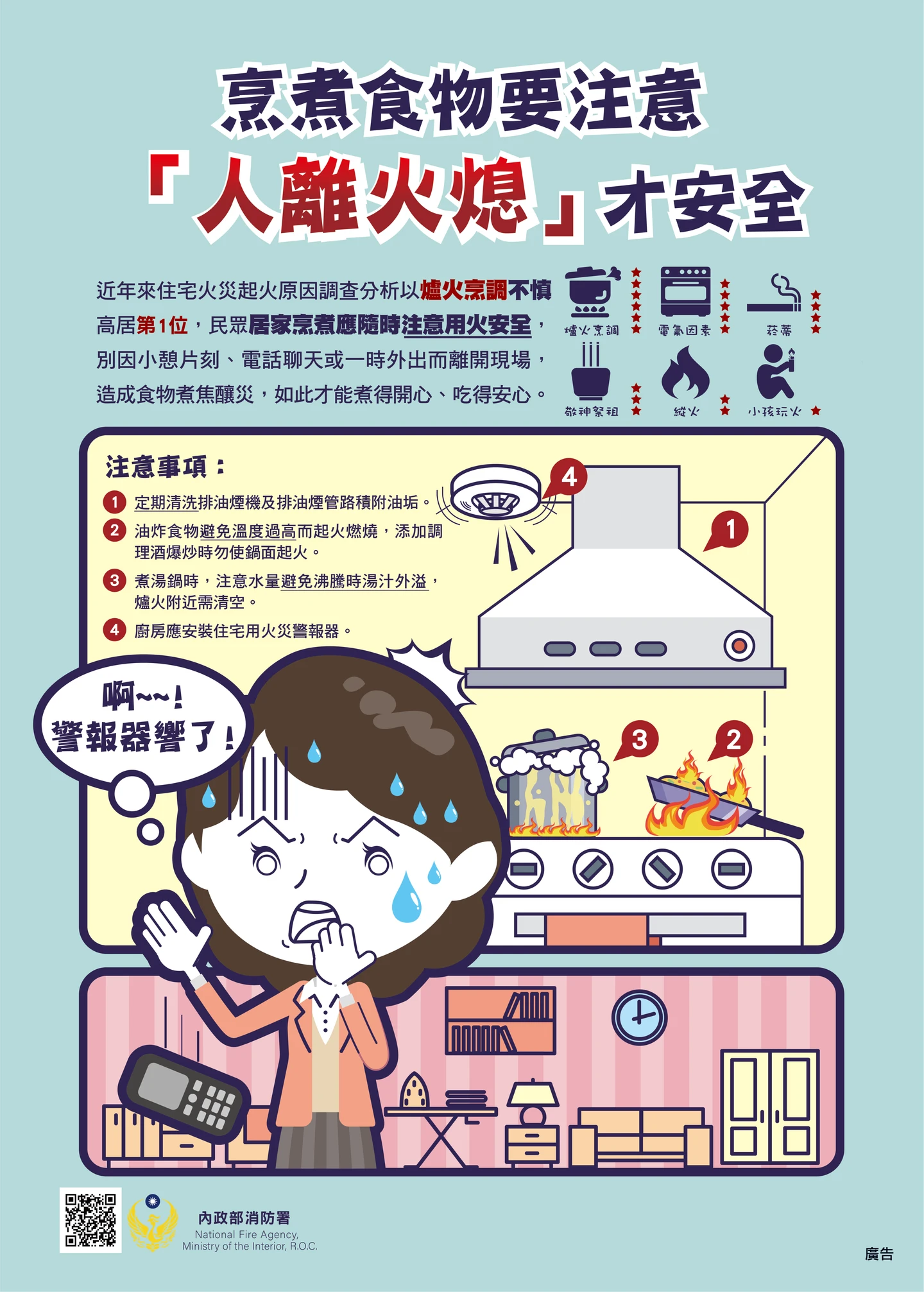 消防署提醒,準備圍爐年菜時,需特別注意爐火烹調安全,烹煮時,務必做到「人離火熄」,建議選用具有熄火安全裝置或具有溫度感知功能的爐具,並避免佳餚經長時間烹煮而焦化起火,或溢出熄滅爐火而造成瓦斯外洩,引發危害。