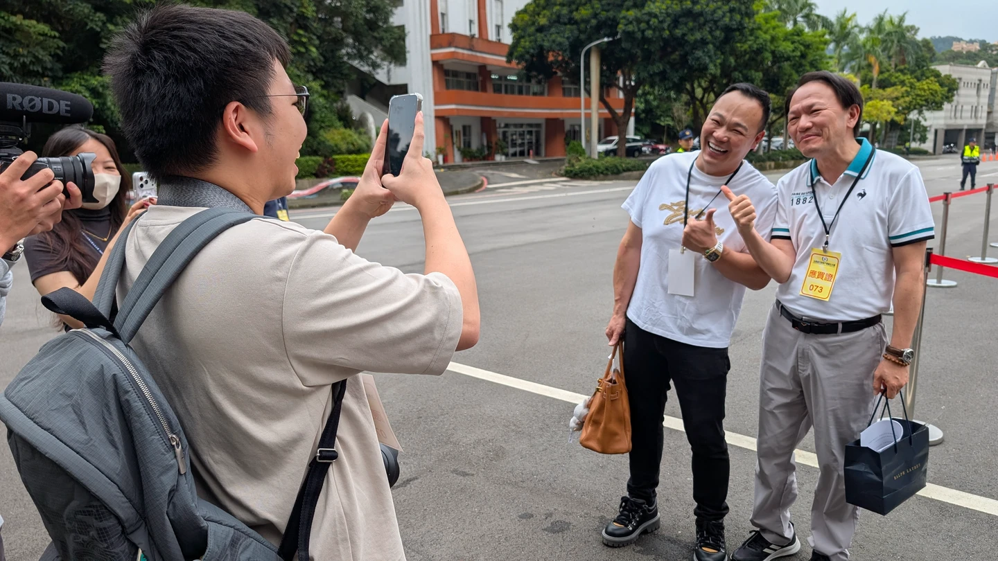 車商同業開心找謝瑞益合影。林志青攝 zoomin