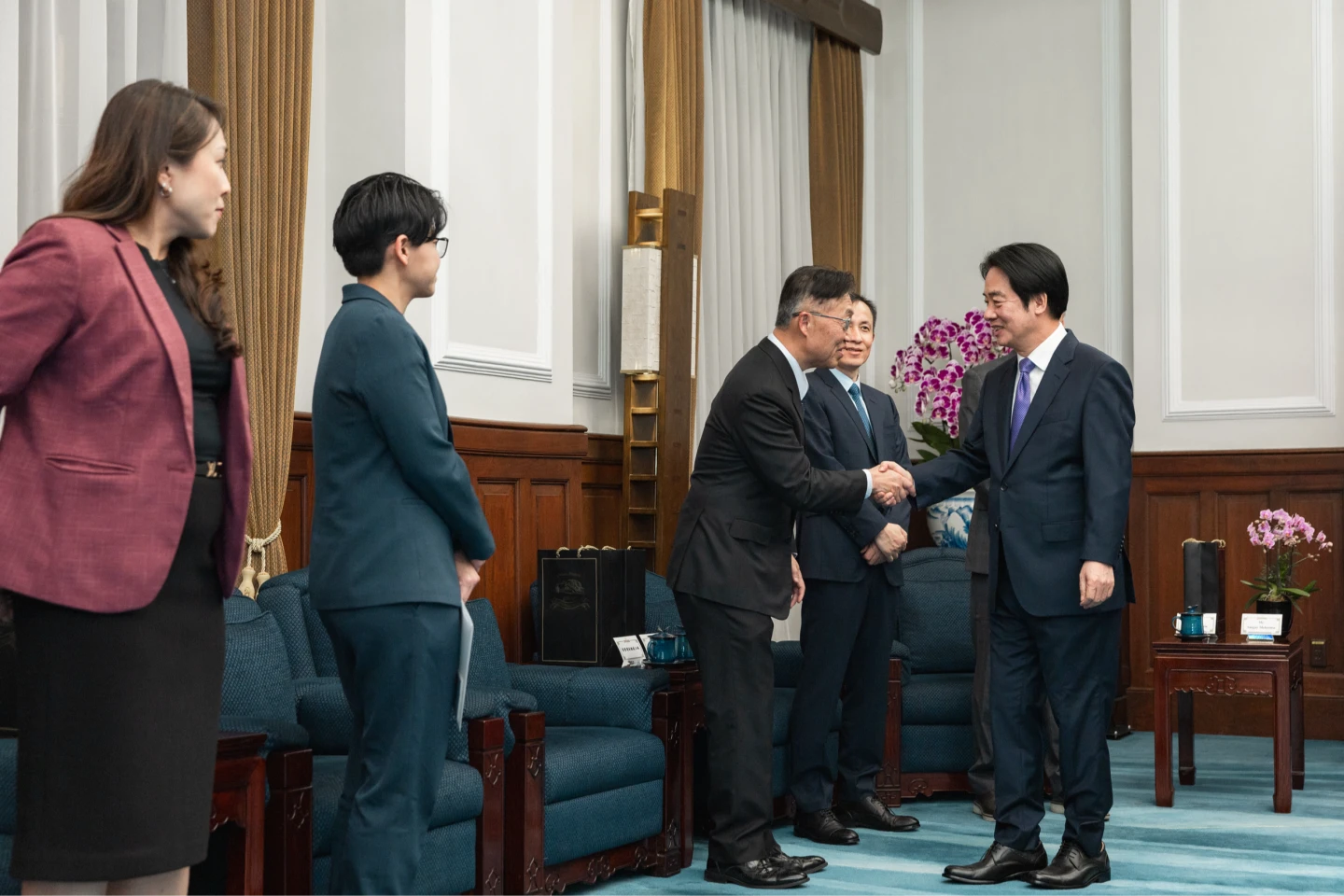 訪賓一行由行政院政務委員兼國家科學及技術委員會主任委員吳誠文、經濟部次長何晉滄陪同,前來總統府晉見總統,總統府秘書長潘孟安也在座。