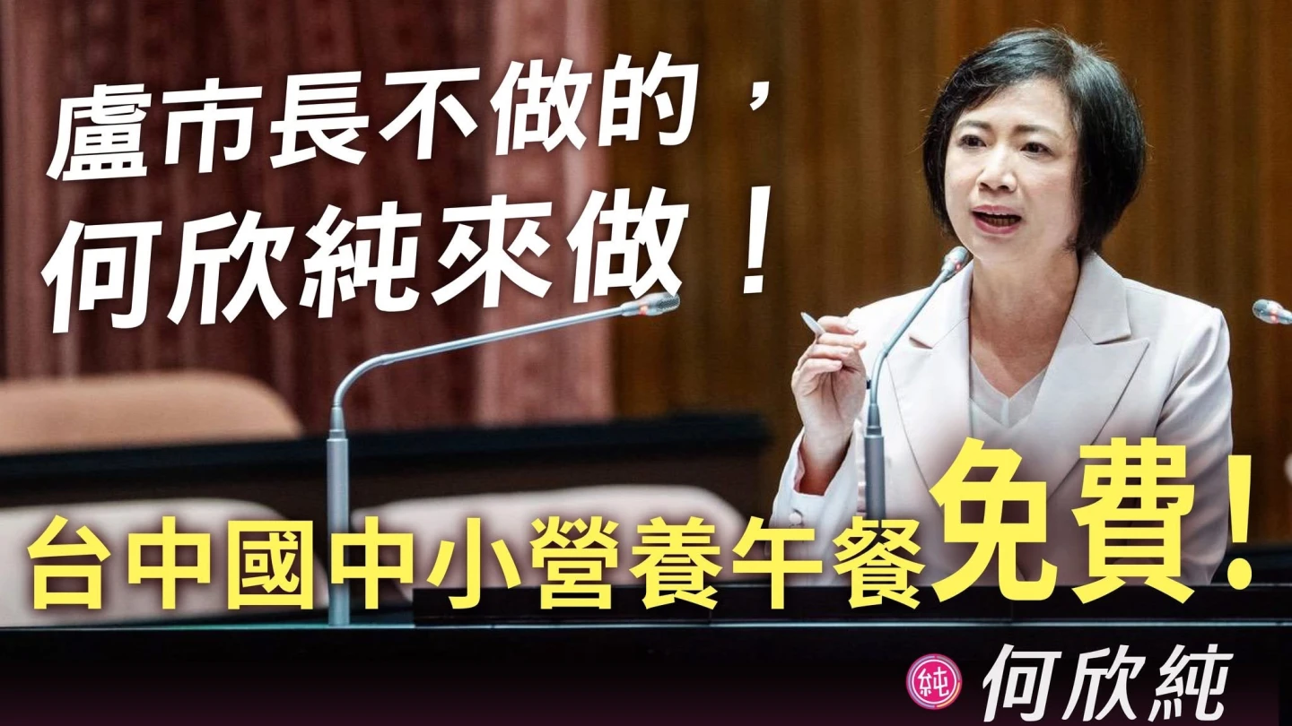 【記者王煌忠/台中報導】台北市長蔣萬安在前天(6日)宣布國中小營養午餐全面免費政策,民進黨下屆台中市長參選人、立委何欣純今天上午9點率先宣布,若當選市長,將由市府全面負擔台中國中、小營養午餐費用,為家庭每年省下上萬元開銷,並點名盧秀燕市府「可以做卻不做」。隔不到1小時,台中市長盧秀燕隨即宣布,台中市將自115學年度起全面實施公立國中小免費營養午餐政策,預計21.4萬名學生受惠,年增支出約25至30億元,將於3月議會提出追加預算,她強調雖然財政辛苦,但「再窮不能窮教育、再苦不能苦孩子」。