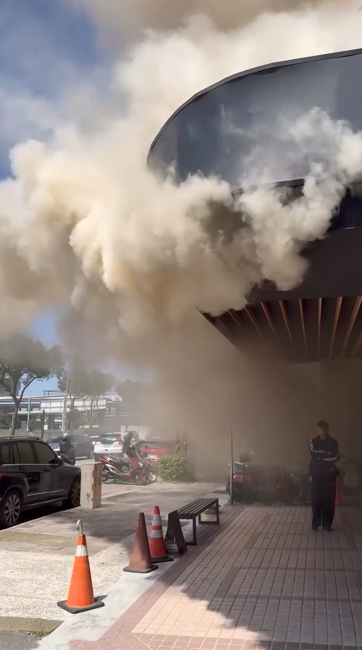 現場排隊民眾直擊表示,好可怕,原本還在排隊突然冒出濃濃黑煙。