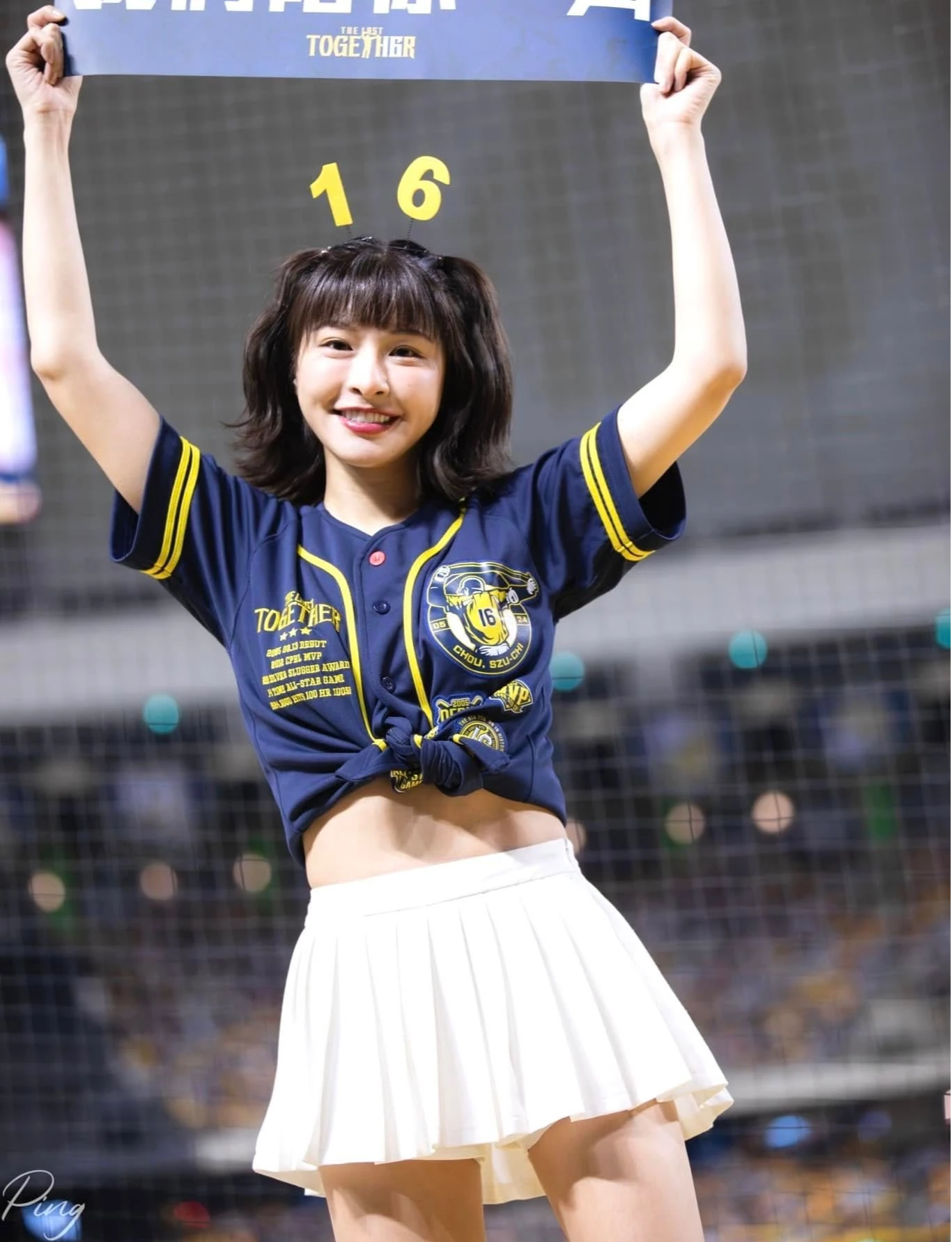 職棒啦啦隊成員「峮峮」,是棒球迷心中的超人氣女神之一,沒想到竟有總統特勤人員趁大巨蛋維安勤務時,下手行竊峮峮簽名球。取自FB@峮峮-吳函峮 zoomin