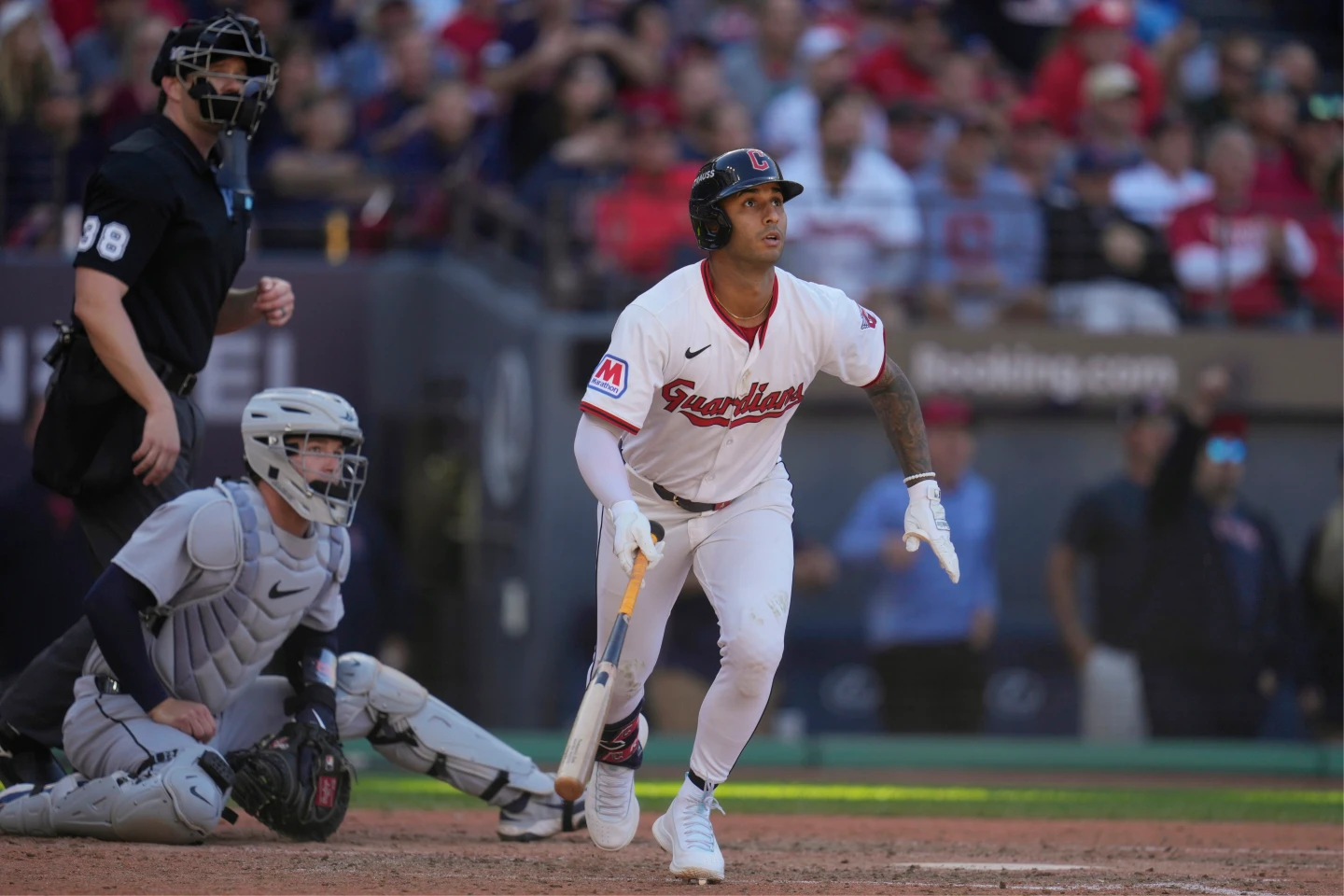 今日第2戰戰況膠著,前7局打完雙方戰成1比1平手,但8局下守護者打線突然覺醒,羅奇歐(Brayan Rocchio)先敲出超前陽春彈,帶動起守護者一輪猛攻,靠連續2支二壘安打再下一城,之後奈勒(Bo Naylor)又一棒扛出驚天3分砲,為比賽鎖定勝利。
