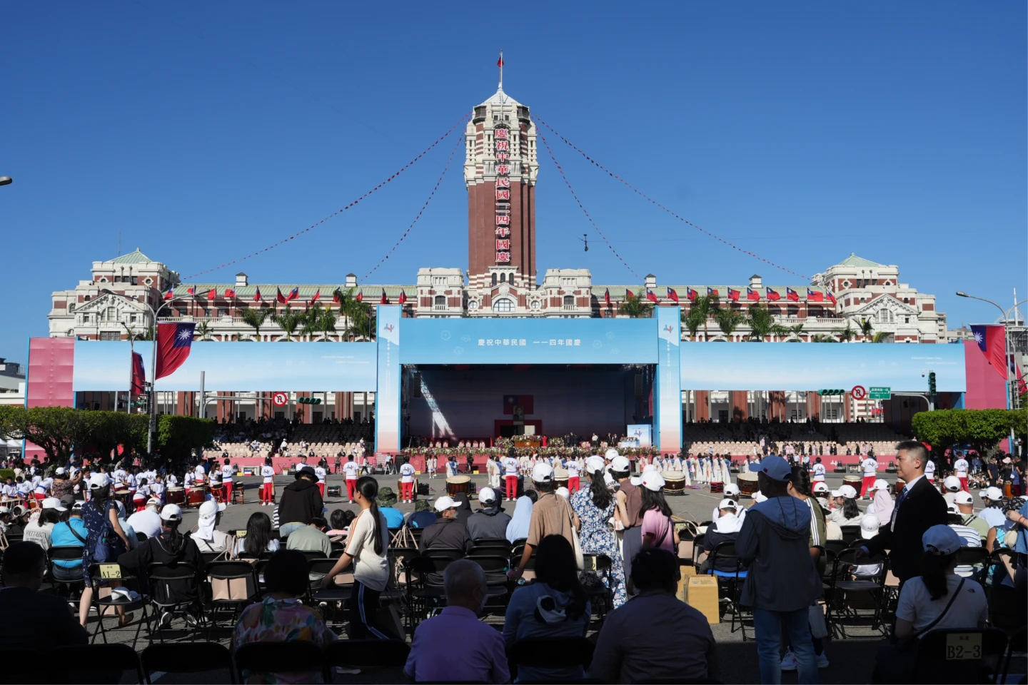 【記者陳力維/綜合報導】中華民國114年國慶大會今(10)日上午8時52分在總統府前廣場盛大登場,延續去年「中華民國生日快樂」主題,主視覺以青天白日滿地紅為主色調。國慶大會共分為序幕暖場、國慶大會、主題表演三個階段。
