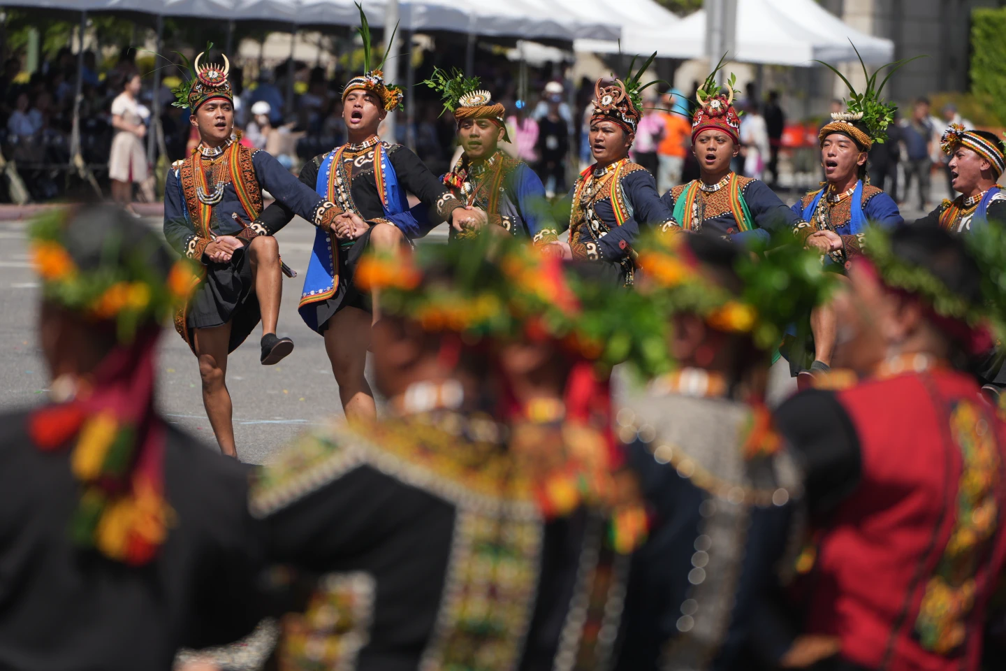 原民同胞以傳統服飾打扮出席114年國慶大會。陳卓邦攝
