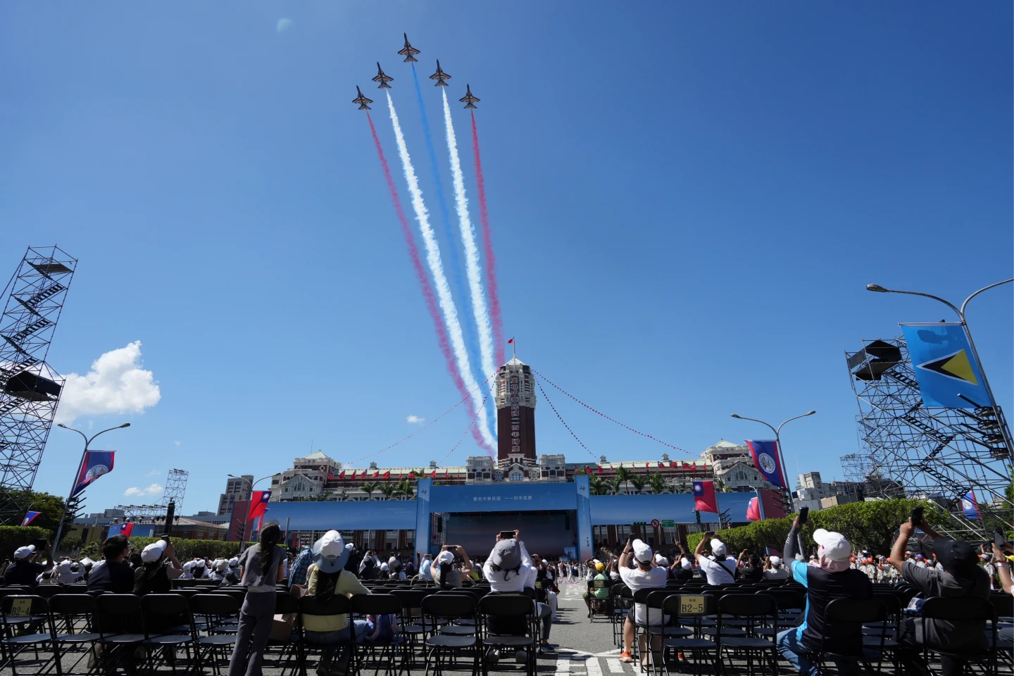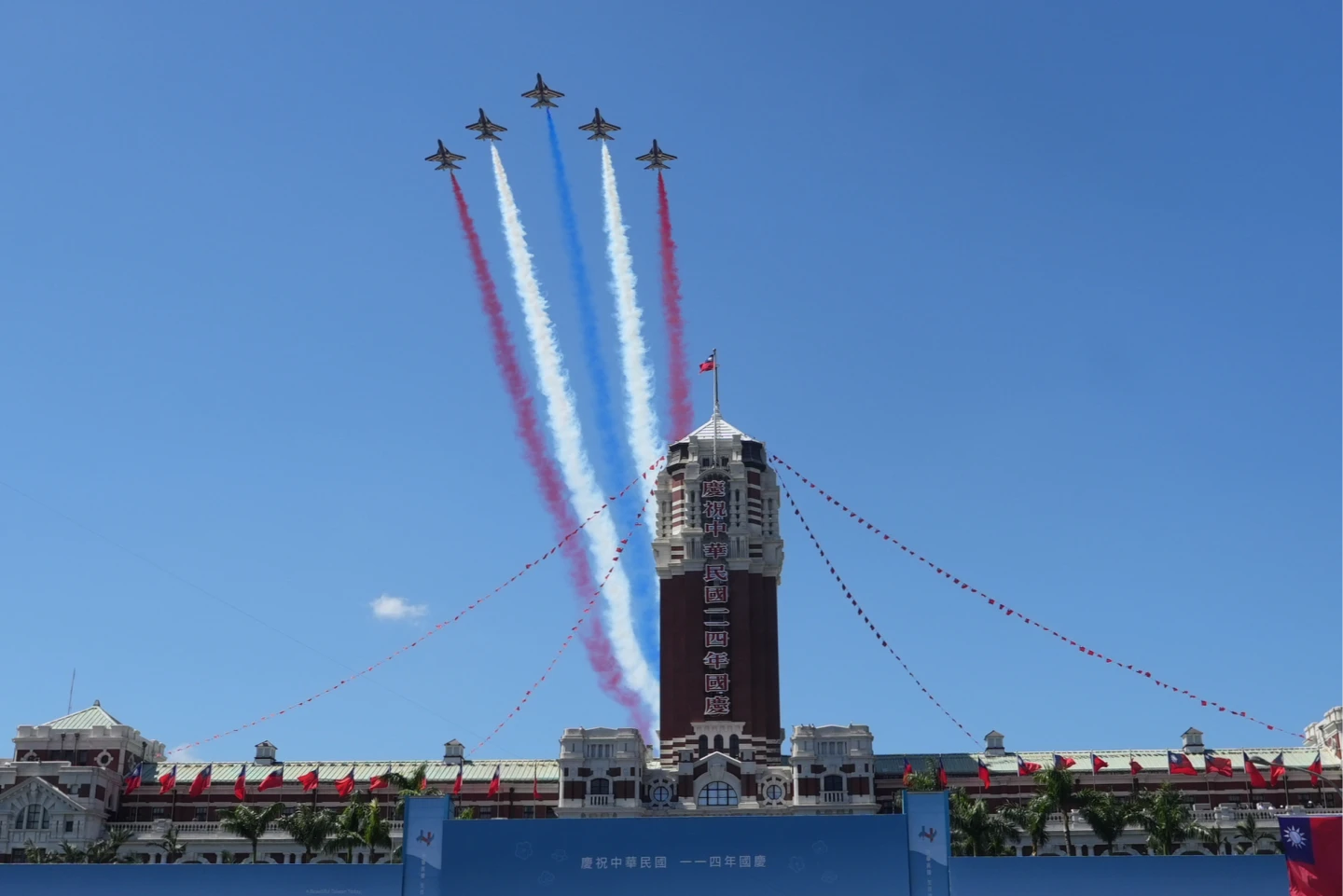 國慶圖輯|威廉波特冠軍隊亮相、雷虎5機衝場 巨幅國旗飛越總統府