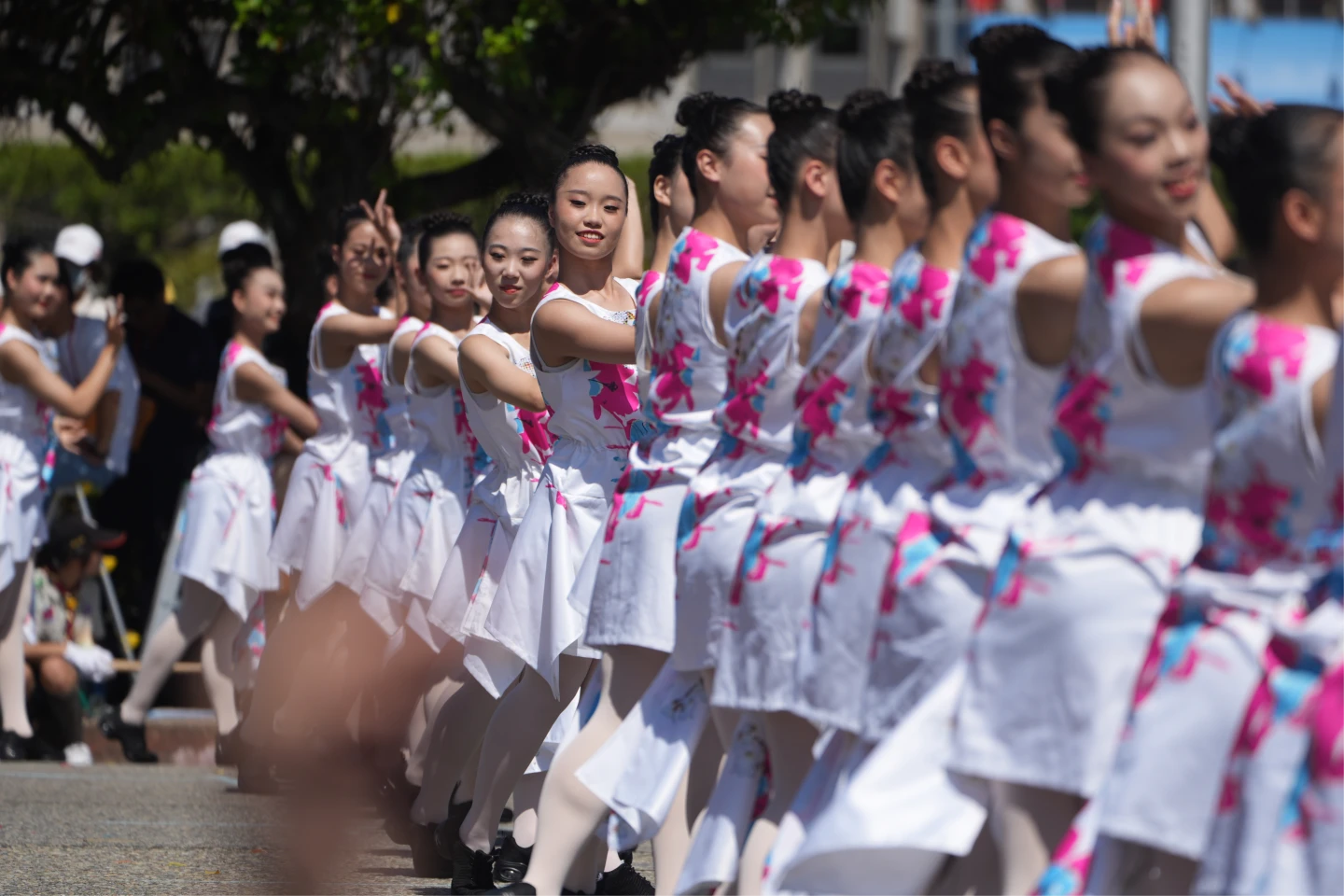 接著,屏東縣私立南榮國中行進管樂團(NZMB)以百人編制,結合管樂、打擊與旗舞,展現堅毅團結。序幕壓軸則由新北市私立莊敬高職表演藝術科,融合街舞、儀隊、旗隊與鼓號樂隊,演出「Taiwan!Beat Up!節奏炸出台灣魂」,象徵台灣在國際舞台上的自信,為序幕暖場階段劃下完美句點。