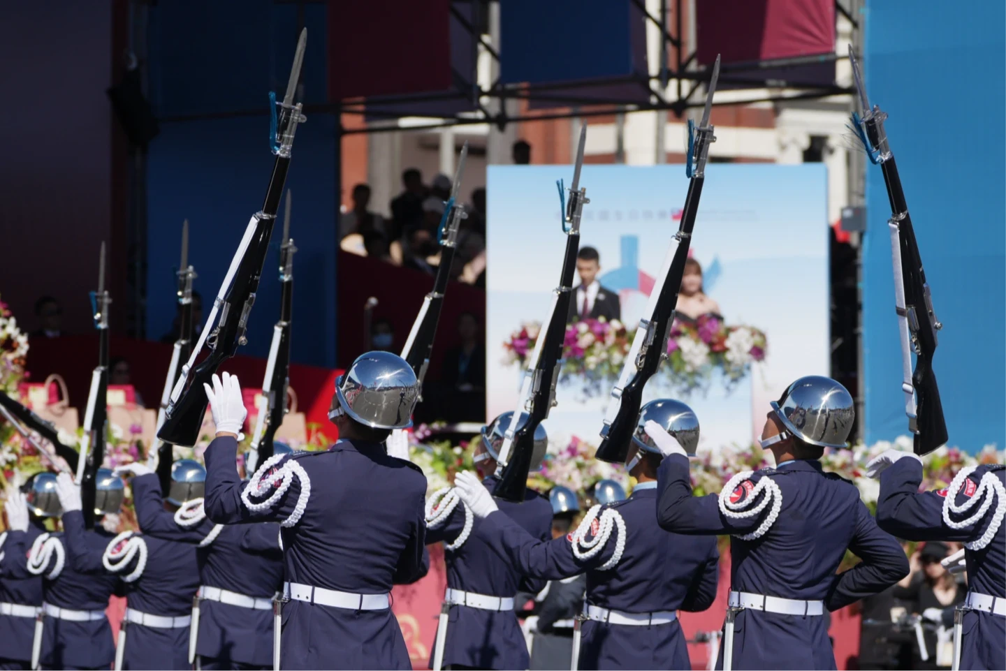 114年國慶大會上三軍儀隊精彩操槍演出。陳卓邦攝