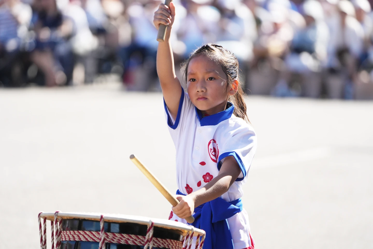 小小鼓手賣力演出,「鴻福齊天 祈鼓獻瑞」揭開114年國慶大會序幕。陳卓邦攝