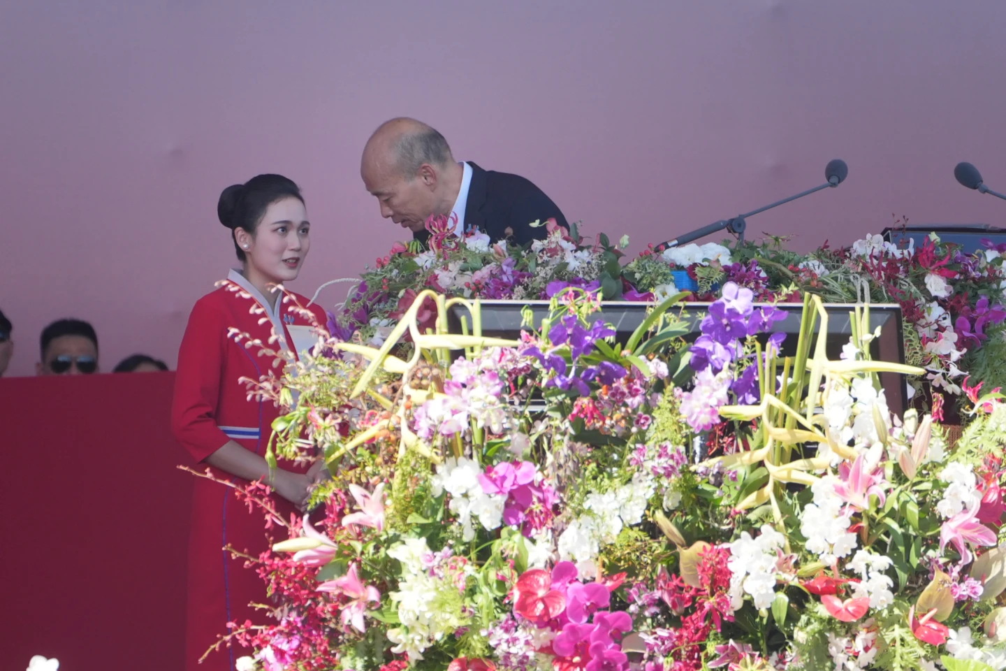 114年國慶大會,禮賓人員告知韓國瑜典禮事項。陳卓邦攝