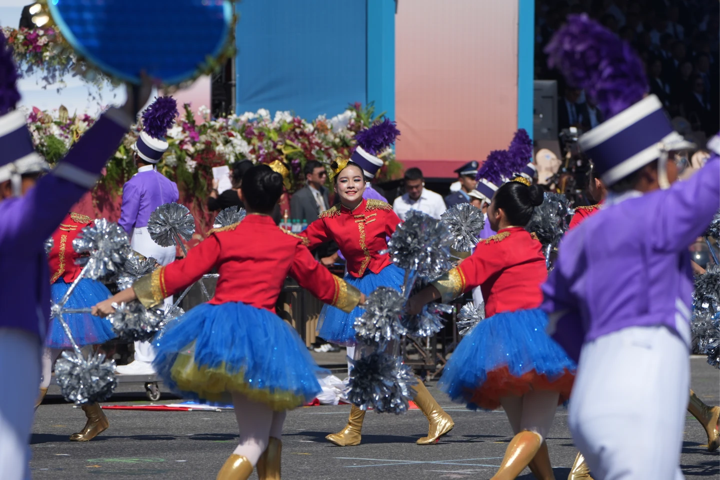 莊敬高職表演藝術科在114年國慶大會,融合街舞、儀隊、旗隊與鼓號樂隊,演出「Taiwan!Beat Up!節奏炸出台灣魂」。陳卓邦攝