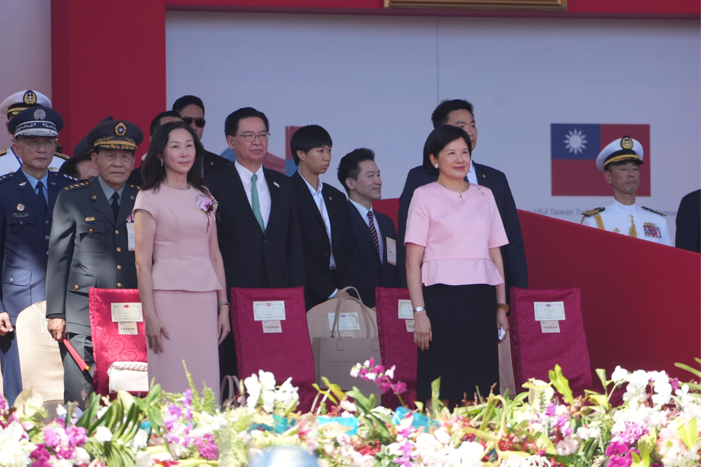 賴清德夫人吳玫如(前排右)與韓國瑜夫人李佳芬(前排左),出席114年國慶大會典禮。陳卓邦攝