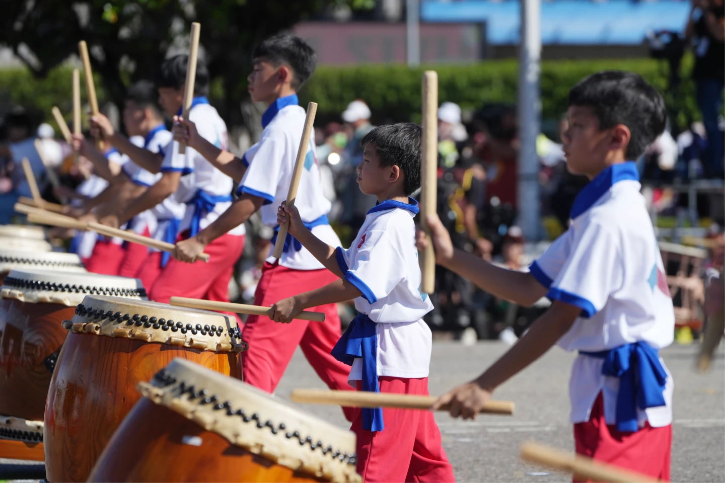 「鴻福齊天 祈鼓獻瑞」揭開114年國慶大會序幕,大小鼓手賣力演出。陳卓邦攝