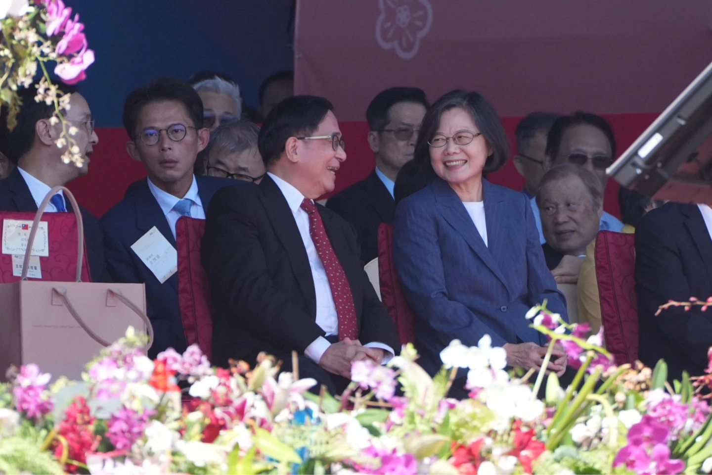 114年國慶大會台上,陳水扁蔡英文相談甚歡。陳卓邦攝