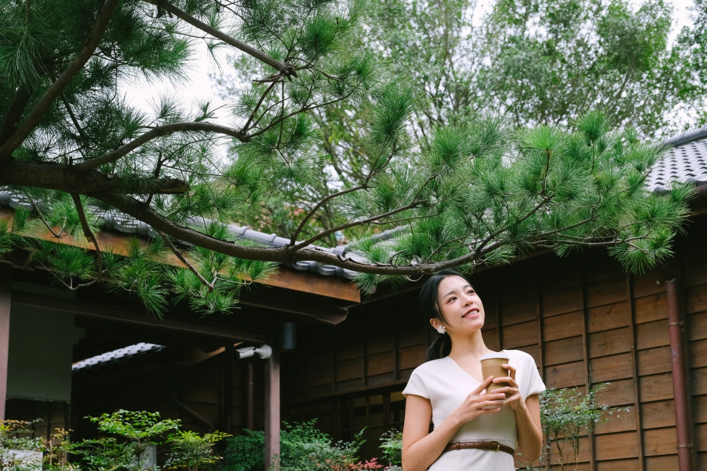以人物與環境互動作為主軸,手持咖啡杯行走於木造廊道或紅磚牆旁,能呈現輕鬆自然的生活節奏;利用植栽作為前景,可營造被綠意包圍的層次感,午後柔和光線特別適合拍攝具有故事感的日常影像。