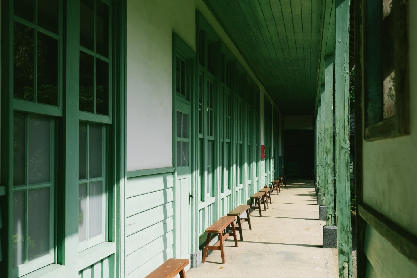 以空間作為畫面主角,沿著木造走廊取景,可捕捉窗框與座椅延伸出的縱深感;午後斜射光線與牆面、地面形成的長陰影,自然呈現安靜而緩慢的時間感。