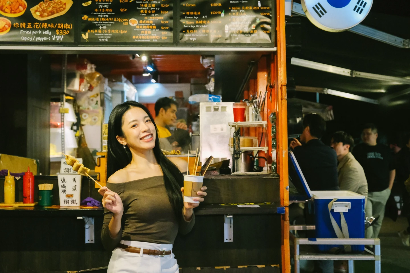 捕捉攤主準備餐點、旅人停留交流的瞬間,是呈現煙火氣的核心;用餐中的人物表情能為畫面增添生活感;拉遠鏡頭時,將貨櫃燈光、河岸夜色與人流一併收進,最能呈現大稻埕夜晚的城市節奏。