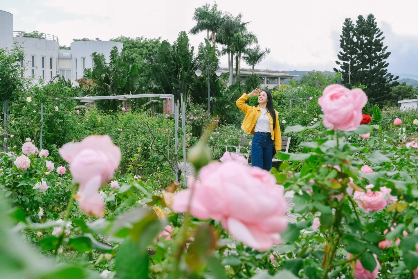 花博新生園區位於中山區新生北路三段,以大片綠意與花田,鋪展出城市中少見的開闊尺度。玫瑰花海沿著步道延伸,粉紅與紅色花朵在自然光下層層堆疊,遠方白色建築與棕櫚樹線條簡潔,使園區顯得明亮而通透。行走其中,花香與微風交織,成為城市裡最容易親近的自然場域。