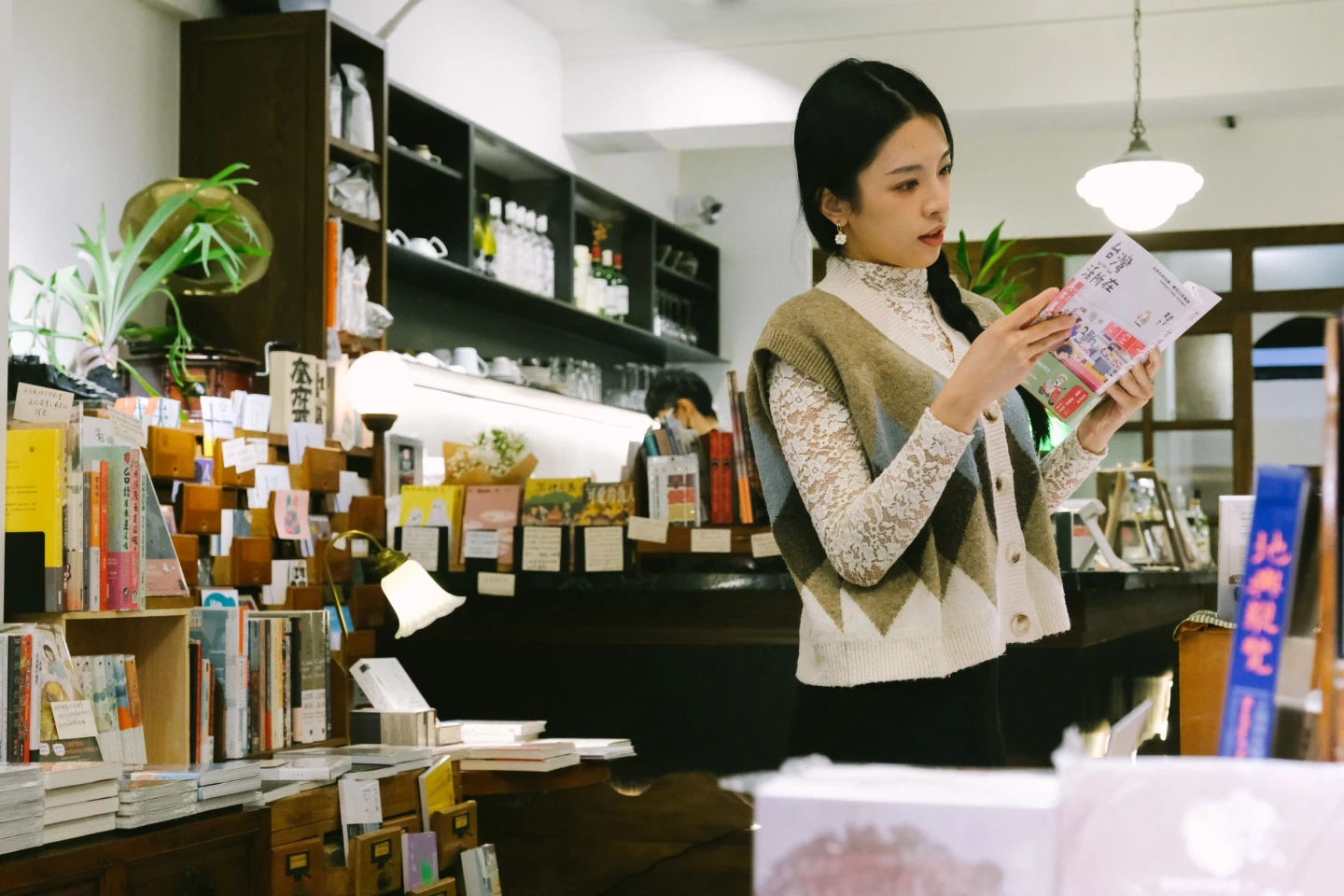 翻書、倚著書架閱讀的瞬間,最能呈現自然且具故事感的畫面;透過書店內外燈光對比,可拍出室內溫暖、室外靜謐的層次;巷口取景時,街道縱深與遠景人流能完整呈現日夜交替的生活樣貌。