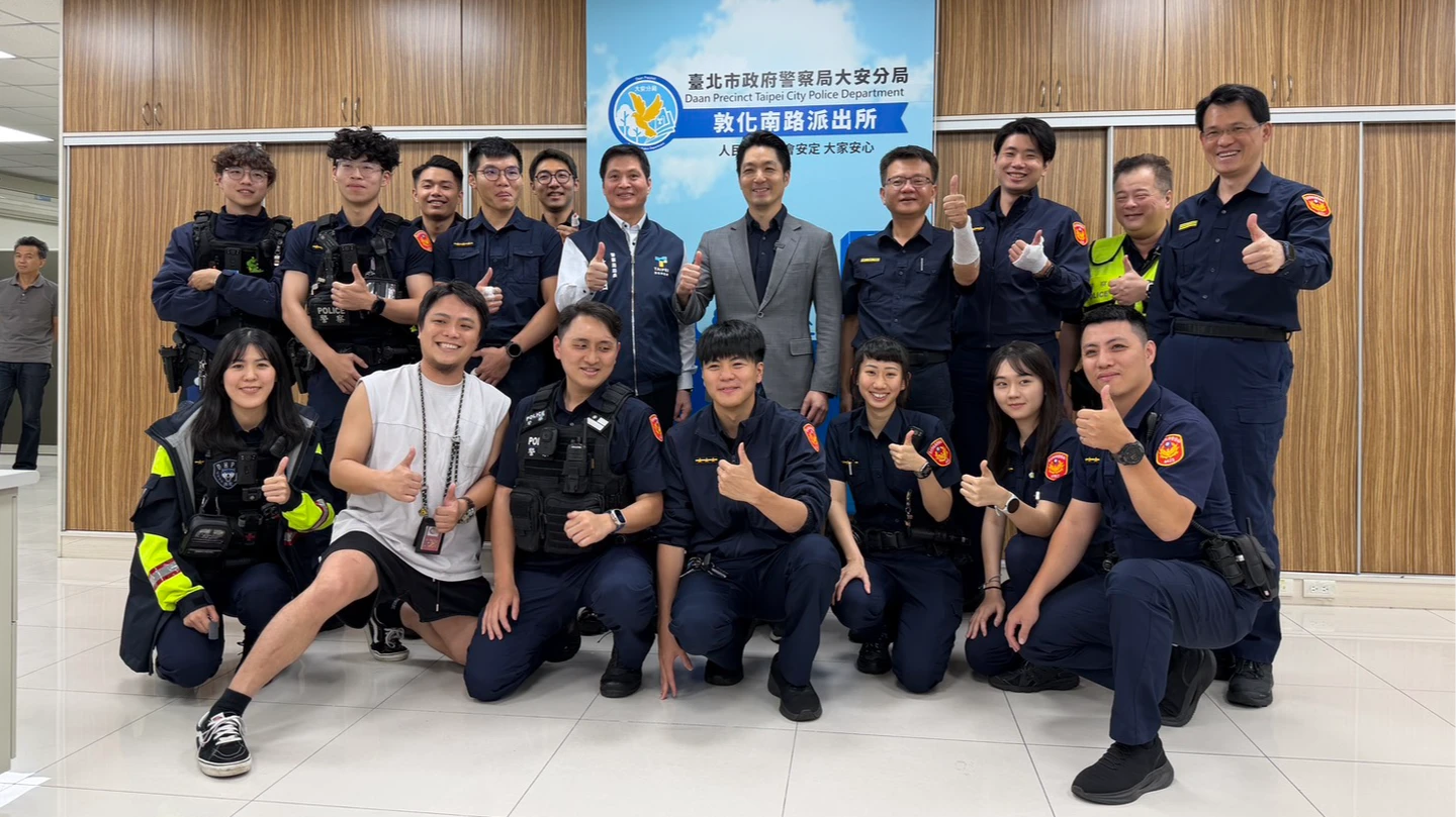 蔣萬安表示,昨天在大安區發生一起銀行搶劫案,第一時間敦南所的警察同仁,包括呂所長在內趕到現場,順利壓制歹徒化解危機,特別對於我們敦南所警察同仁的積極、臨危不亂表達感謝與鼓勵。