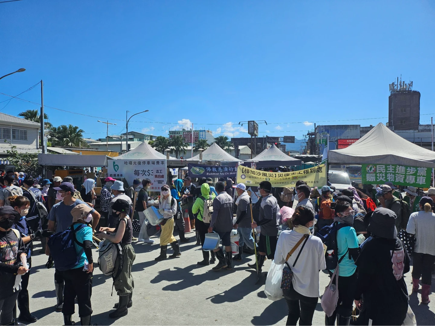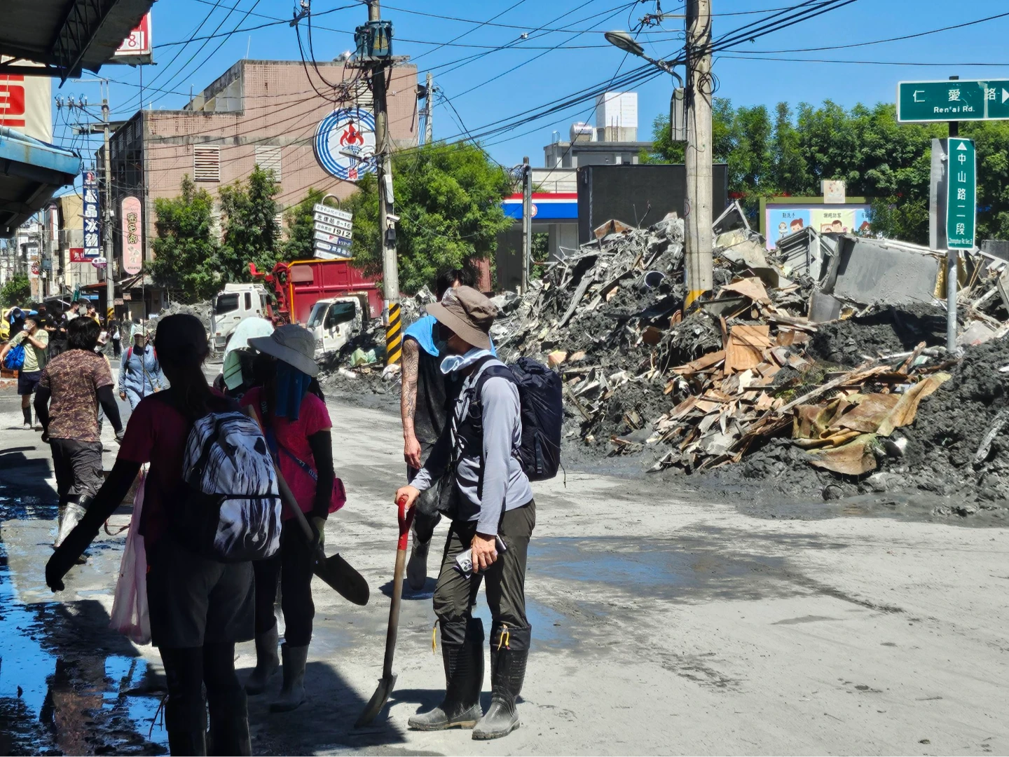 慈濟、法鼓山、基督教團體、一貫道等各式志工團都還在,也有不少是小團救援隊,或單一企業組隊。