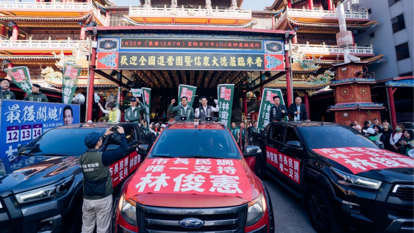 林俊憲則於今天舉辦第一場「台南團結車隊大會師」,包含立委賴惠員、郭國文、林宜瑾,以及議長邱莉莉、副議長林志展帶領10多位議員大陣仗力挺,展現強大聲勢與組織力。