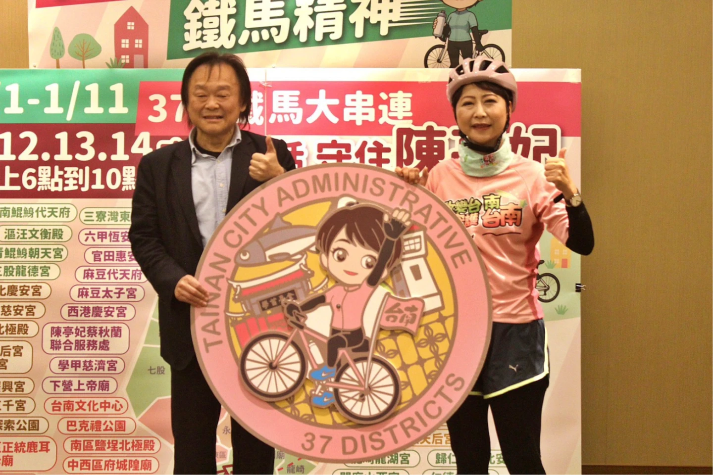 【記者王志弘/台南報導】民進黨台南市長初選進入決戰月!立委陳亭妃今天宣布元旦起啟動長達11天、橫跨37區的鐵馬長征,「扶龍王」立委王世堅現身力挺,致贈「勳章」打氣;立委林俊憲則集結3名綠委、14名市議員,在台語諧音象徵「會贏」的下營區啟動團結車隊大會師,展現必勝決心。