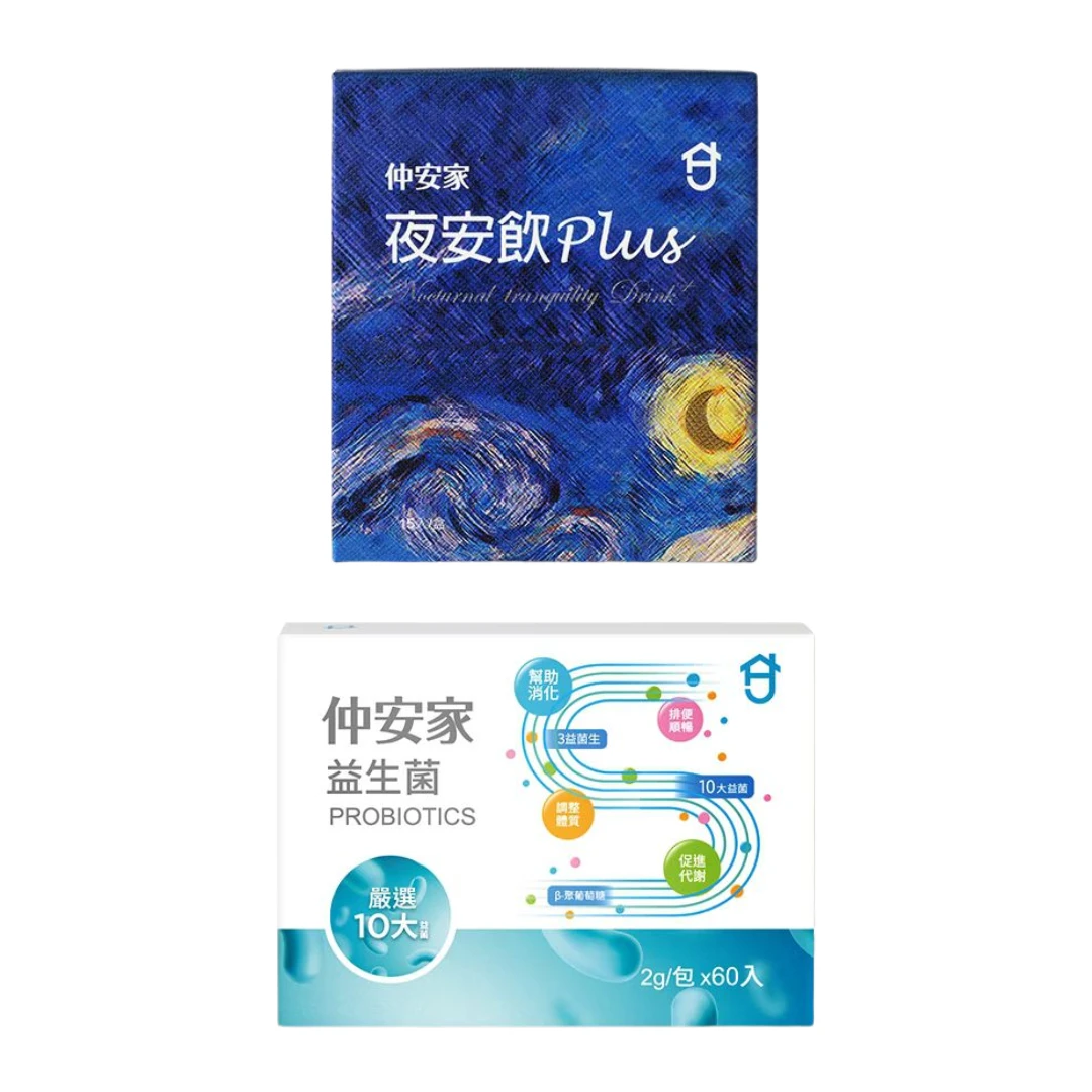 【順暢好眠3組】 仲安家夜安飲 Plus(45入)+ 仲安家益生菌(180包)