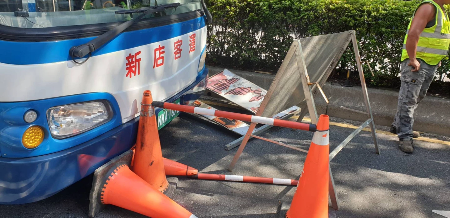 有片|643公車司機恍神撞告示牌 1家3口跌倒!司機及2孩送台大