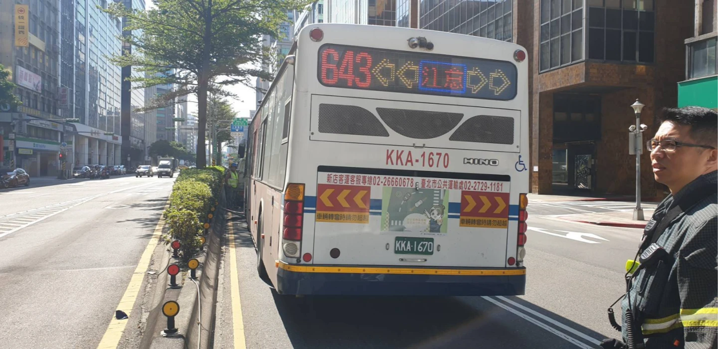 據悉,肇事的643公車今天上午沿松江路北往南行駛於公車專用道,在長春松江路口放乘客下車後,繼續往南行駛,洪姓司機自稱恍神,不慎撞上施工告示牌,當下緊急剎車,造成乘客跌倒。