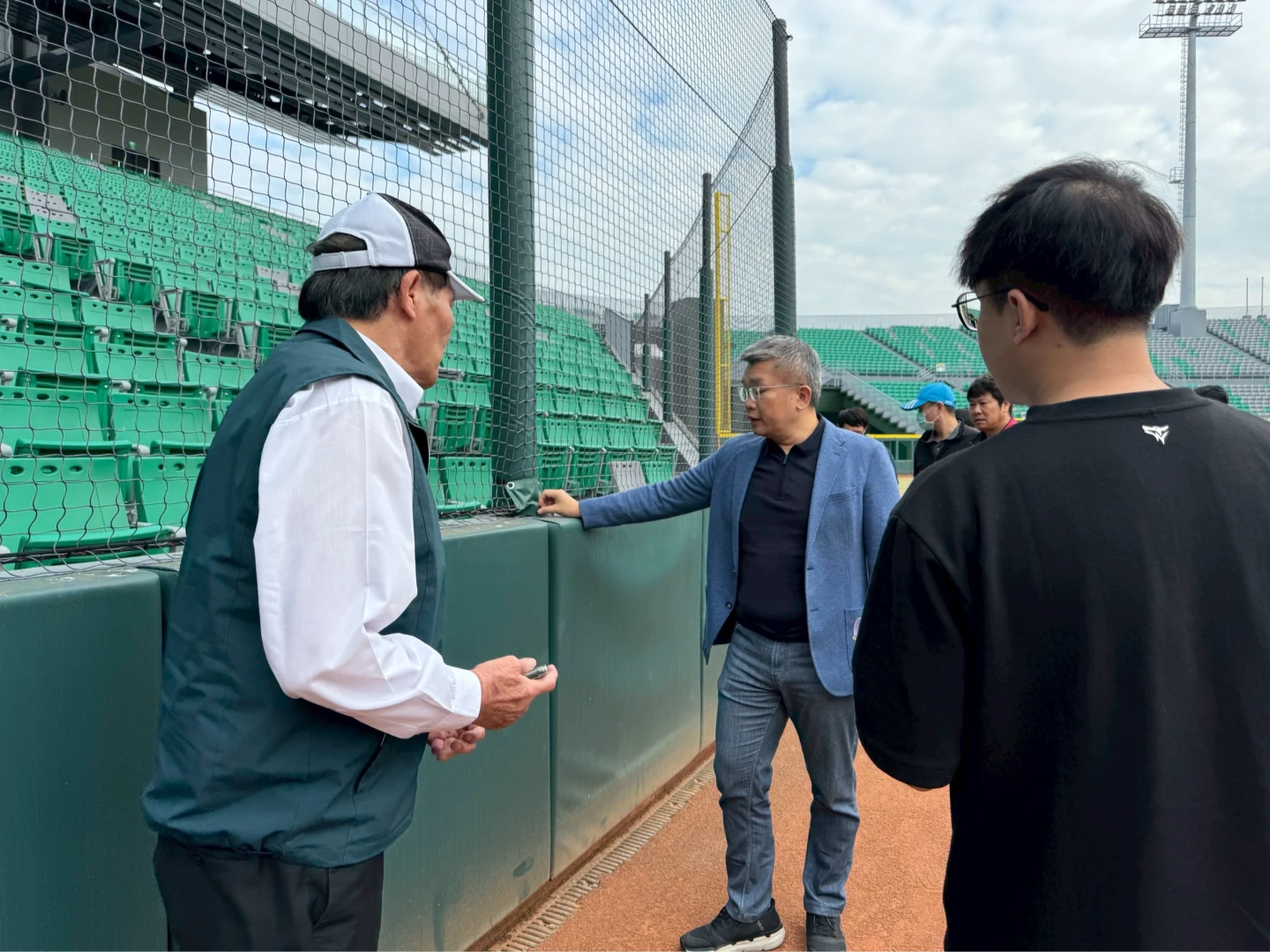 中職會長蔡其昌昨(19日)天特別率領聯盟祕書長楊清瓏與相關賽務部同仁前往了解亞太棒球場目前改善的進度,針對聯盟提出的11項球場改善項目,包含全壘打標線錯置、界外區防撞墊補強、外野牆面上色等問題,目前已經完成9項,最後2項預計在月底前完成,比原預定12月中左右完成改善的進度快。