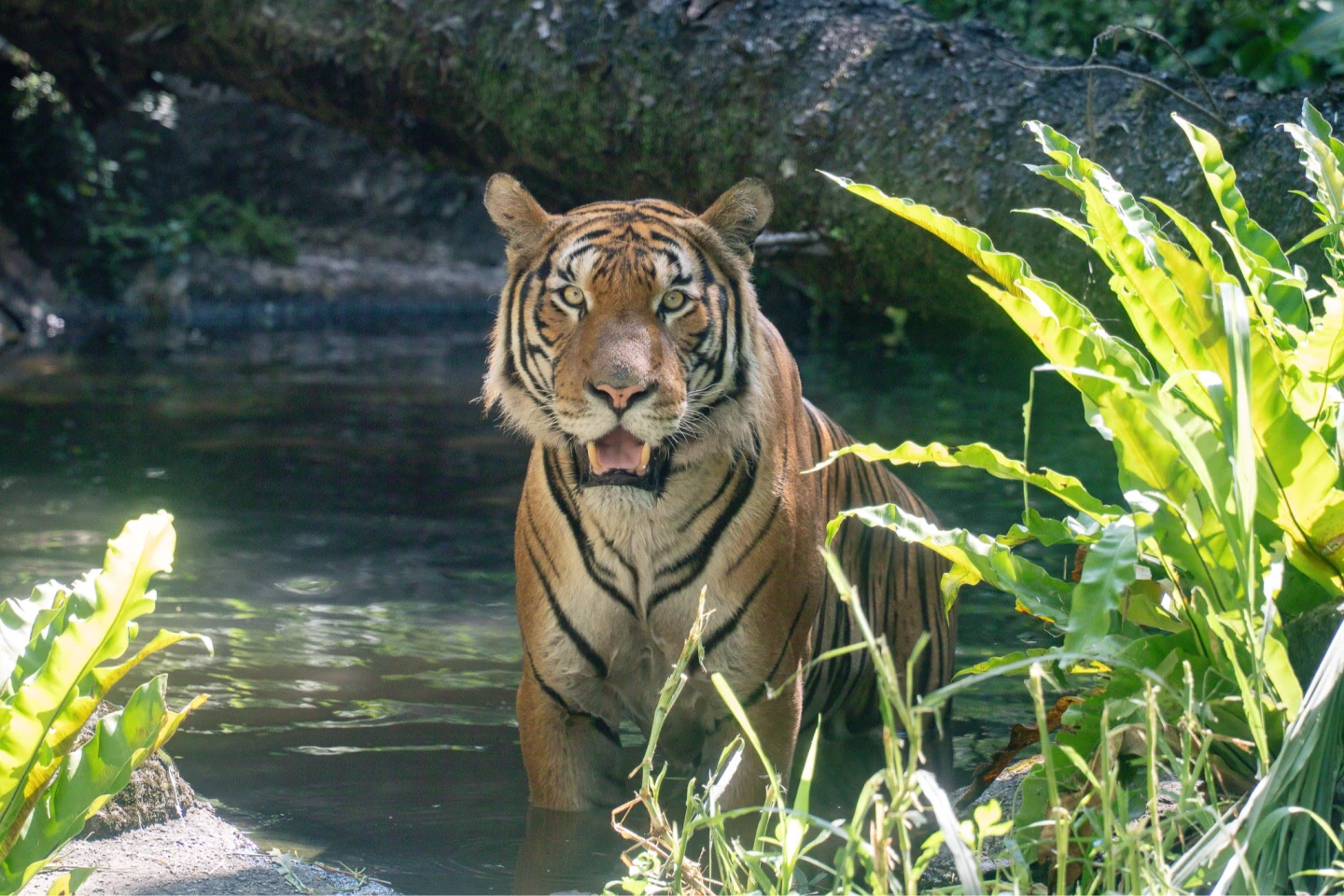 動物園新虎亮相!馬來虎Arhaa呆萌泡澡 現蹤熱帶雨林區