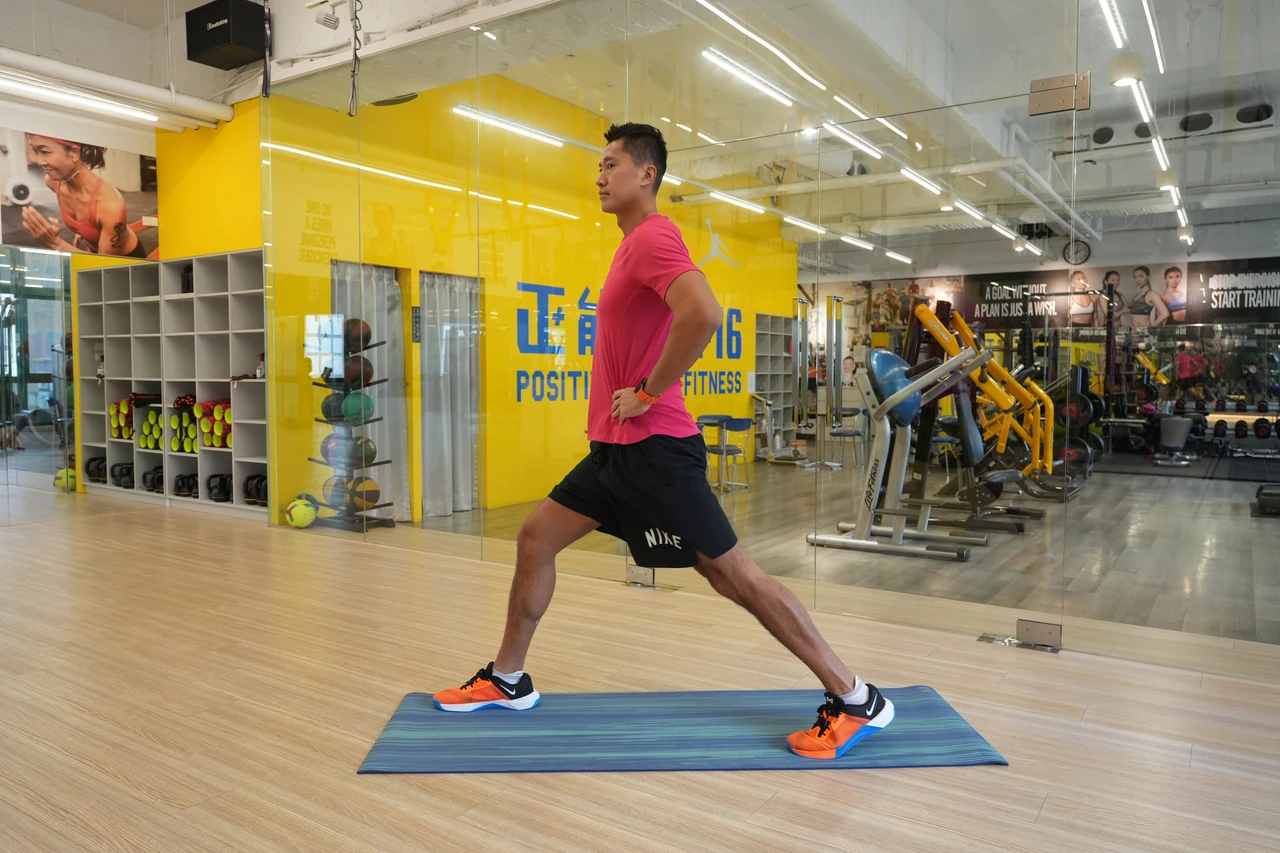 第一個動作:單腳弓箭步