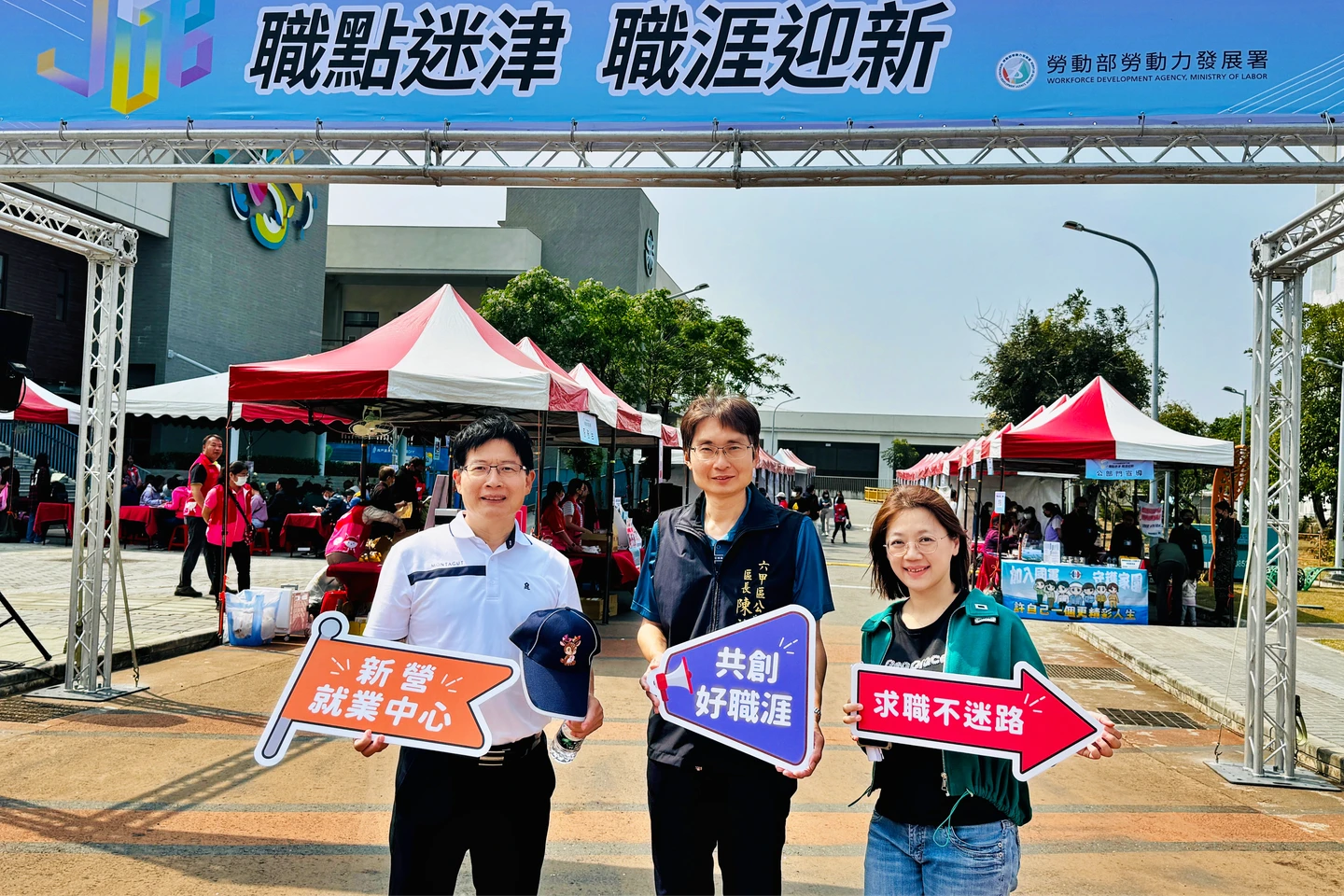 一天下來吸引500多人到場洽詢,雲嘉南分署長劉邦棟與六甲區長陳啓榮等人也到場巡視,為求職者加油打氣。