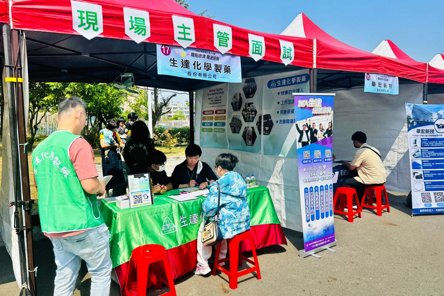 場外還設有互動體驗市集與職訓成果展示,除了庇護工場展售在地農特產,也有免費的視障按摩服務。現場更導入科技感十足的AI掌紋解碼與職業牌卡測驗,協助求職者從心理層面探索適性職務,還能透過「履歷健檢」來修正內容,提高媒合率。